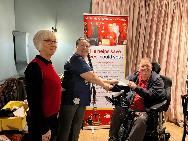 I was asked to attend the Boyne Arms at Burwarton to receive a cheque for £3,500 from the club generously donated to the Midland Air Ambulance Charity