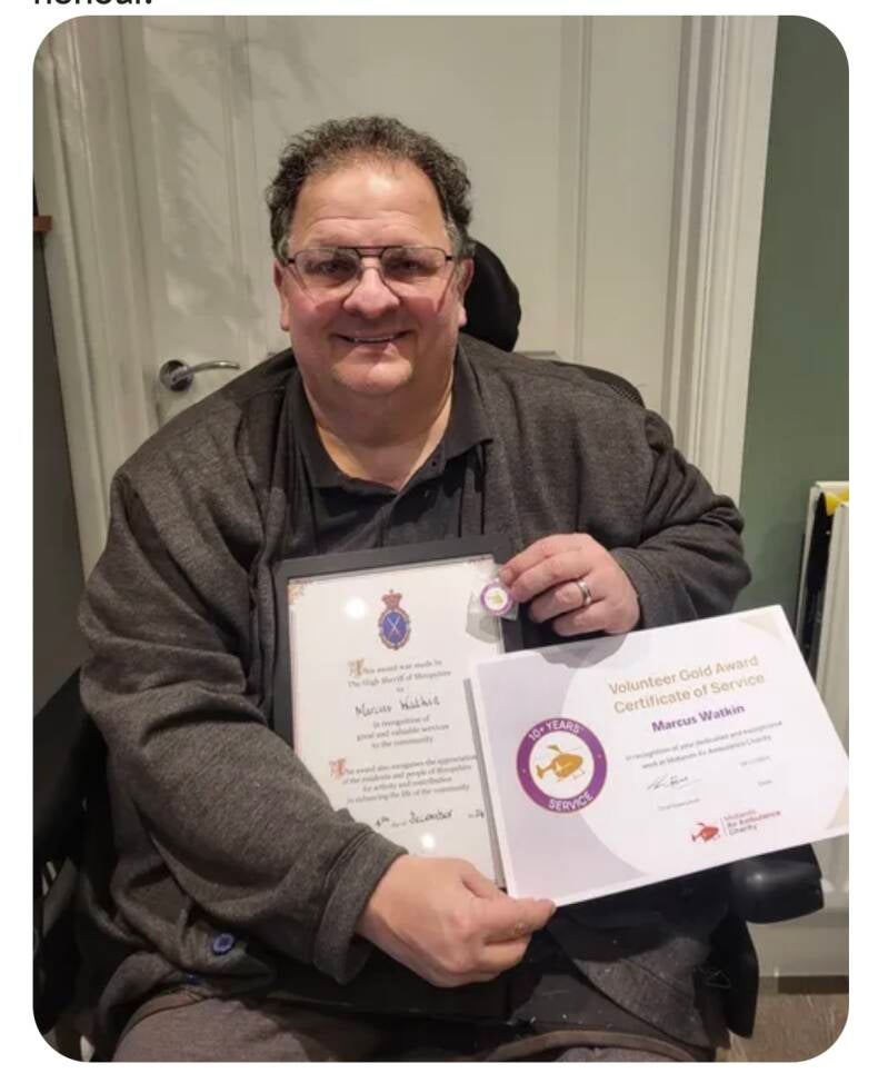 I was absolutely surprised to be presented these awards by the High Sheriff of Shropshire recently , in Recognition of my volunteering with the air ambulance. Myself and many volunteers with the air ambulance were recognised for their time they have volunteered over the years.